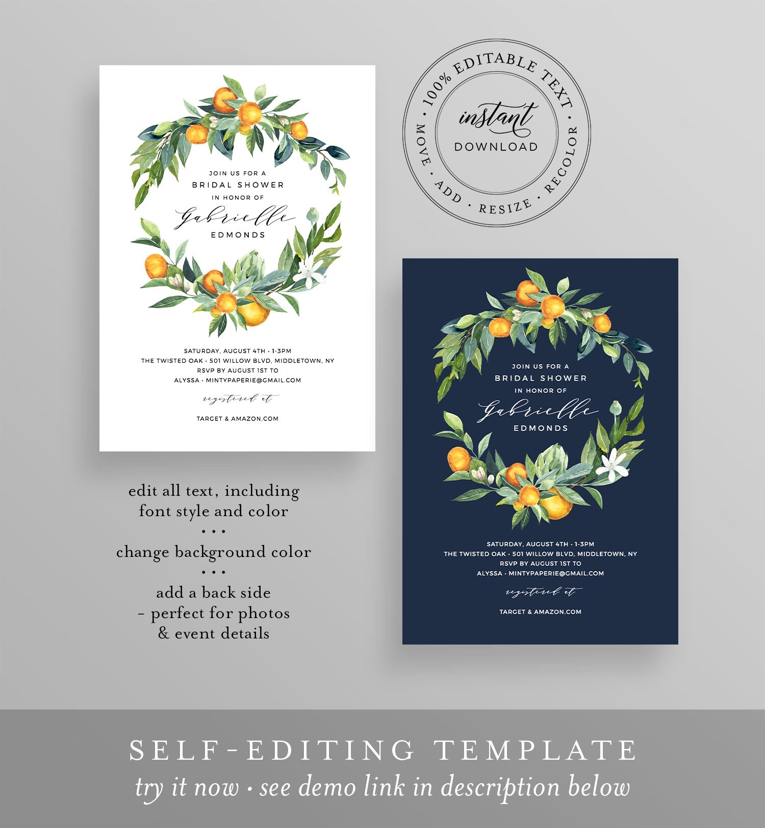 Orange And Black Bridal Shower Invitation To Print For Free / Printable Monograms And Martinis Bridal Shower Invitations ... : Burlap wedding invitations discount wedding invitations bridal shower invitations invitations online wedding stationary reception invitations rustic country vintage bridal shower invitations | zazzle.com.. And they'll fit in standard a7 sized envelopes, which are simple to find and don't require special postage. About our bridal shower invitation templates. Your very own curated collection of cards. Black and white greenery wedding invitation. Make custom rsvp cards to go with your invitations!